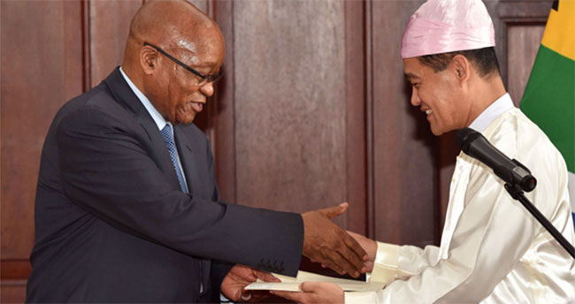His Excellency U Myint Swe, Ambassador Extraordinary and Plenipotentiary of the Republic of the Union of Myanmar to the Republic of South Africa, presented his Letters of Credence to His Excellency Mr. Jacob Zuma, President of the Republic of South Africa, at a ceremony held in Pretoria on 24 January 2017.